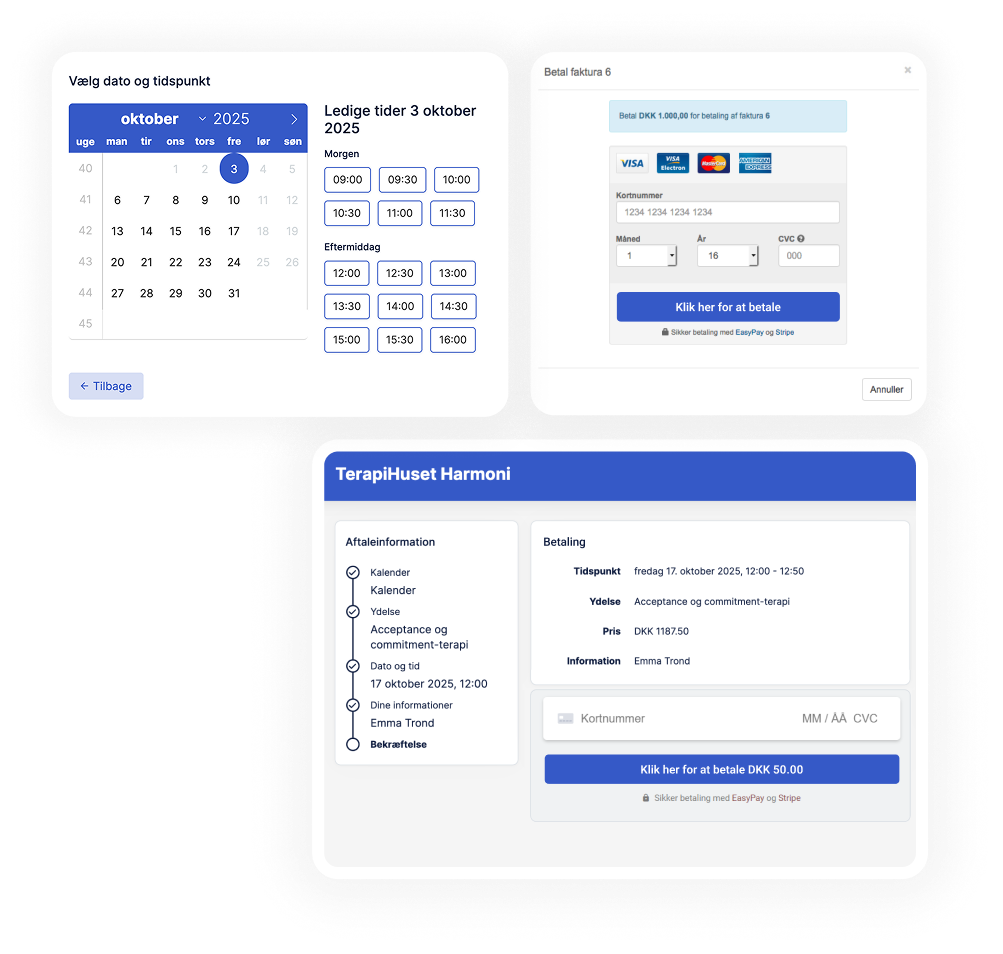 Terapeut Booking automatiserer de administrative opgaver og gør din hverdag som behandler nemmere og mere effektiv. Vores intuitive online booking gør det hurtigt og enkelt for både dig og dine klienter at booke aftaler og fylde kalenderen.