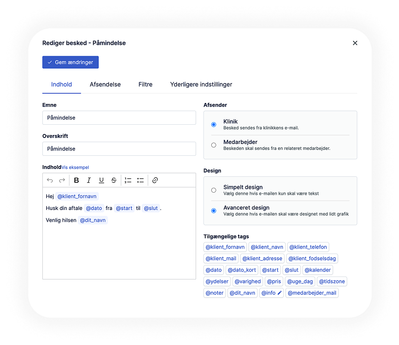 Ja, du kan redigere både indhold og afsendernavn, så kommunikationen matcher din klinik.