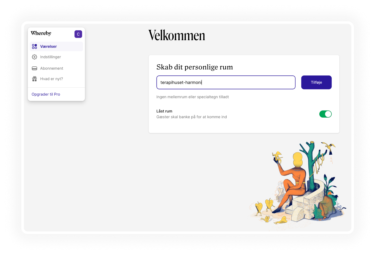 Ja, du kan vælge Whereby dansk interface, som gør oplevelsen mere intuitiv for både dig og dine klienter.