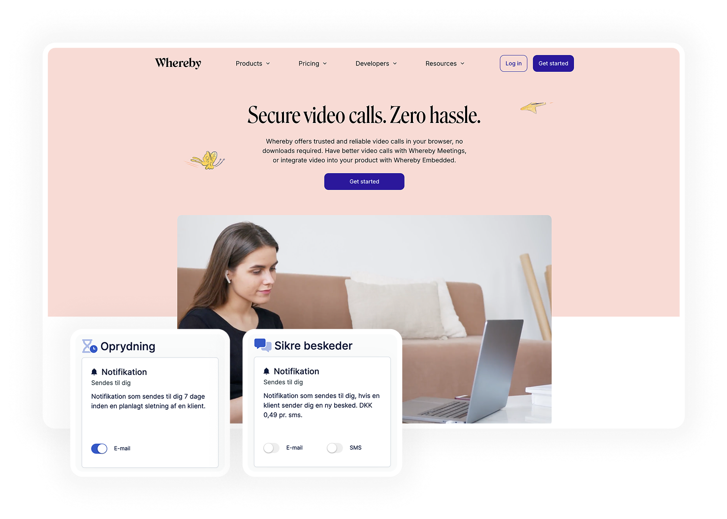 Vil du tilbyde dine klienter online konsultationer uden at gå på kompromis med sikkerhed og tryghed? Med Whereby (også tilgængelig på dansk) og Terapeut Booking kan du hurtigt og nemt komme i gang med e-konsultationer.