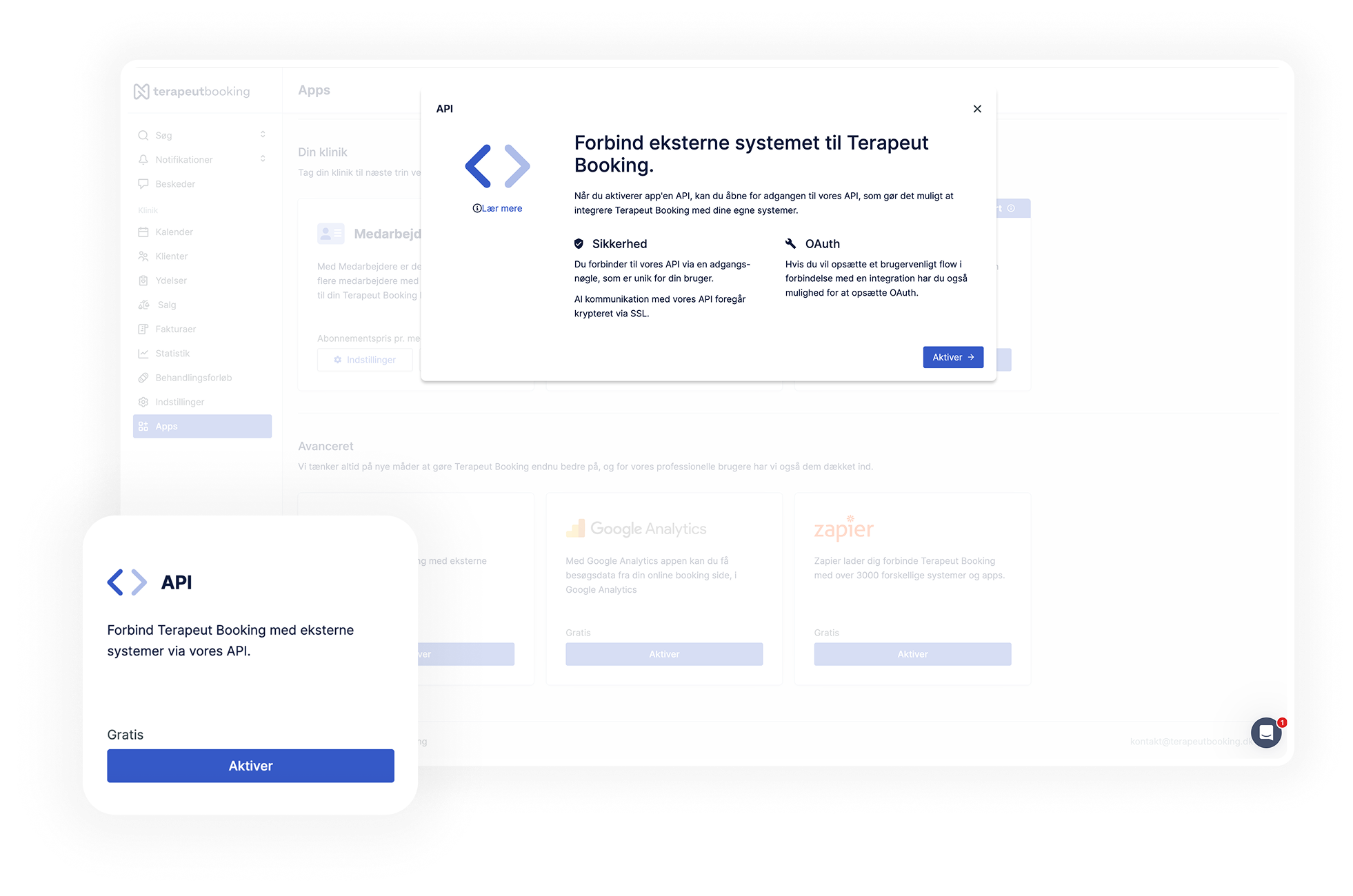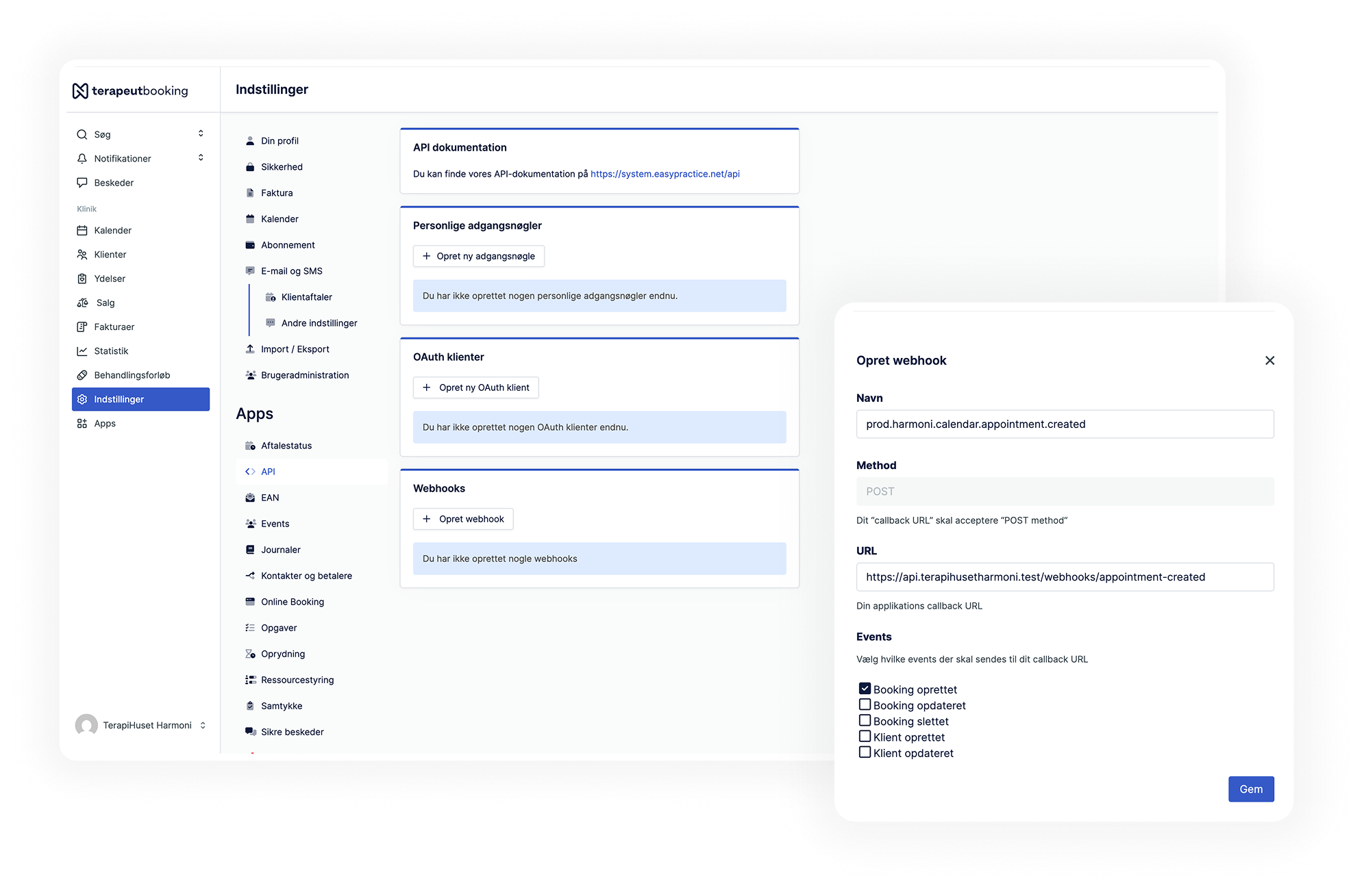 API og integration med Terapeut Booking