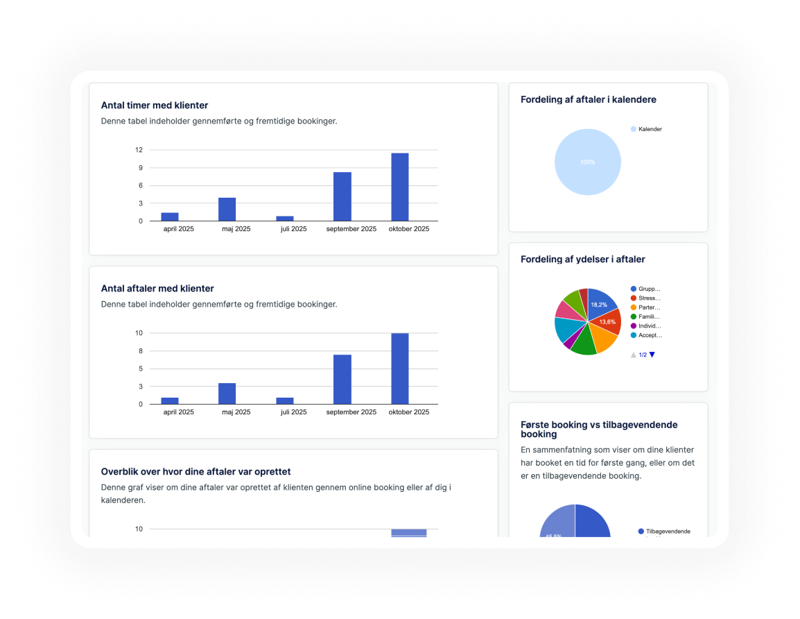 Rapportering: Overblik pr. behandler, ydelse og periode – så I kan fordele kapacitet og følge udvikling.